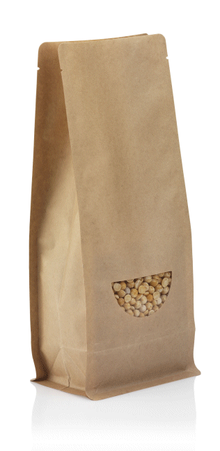 Wegen seines flachen Bodens besitzt der Beutel eine gute Standfestigkeit.